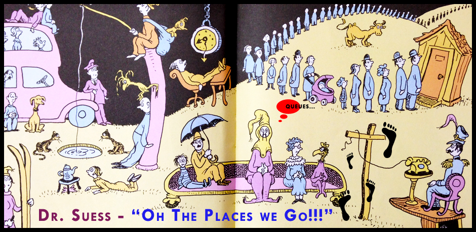 I find the Waiting Place fascinating, and am often joining the tail end of a human-winding ‘WAIT HERE’ condition with fantasies about what I would do, could do, right now – to bring the moment we all share in this place or this space to NOW.